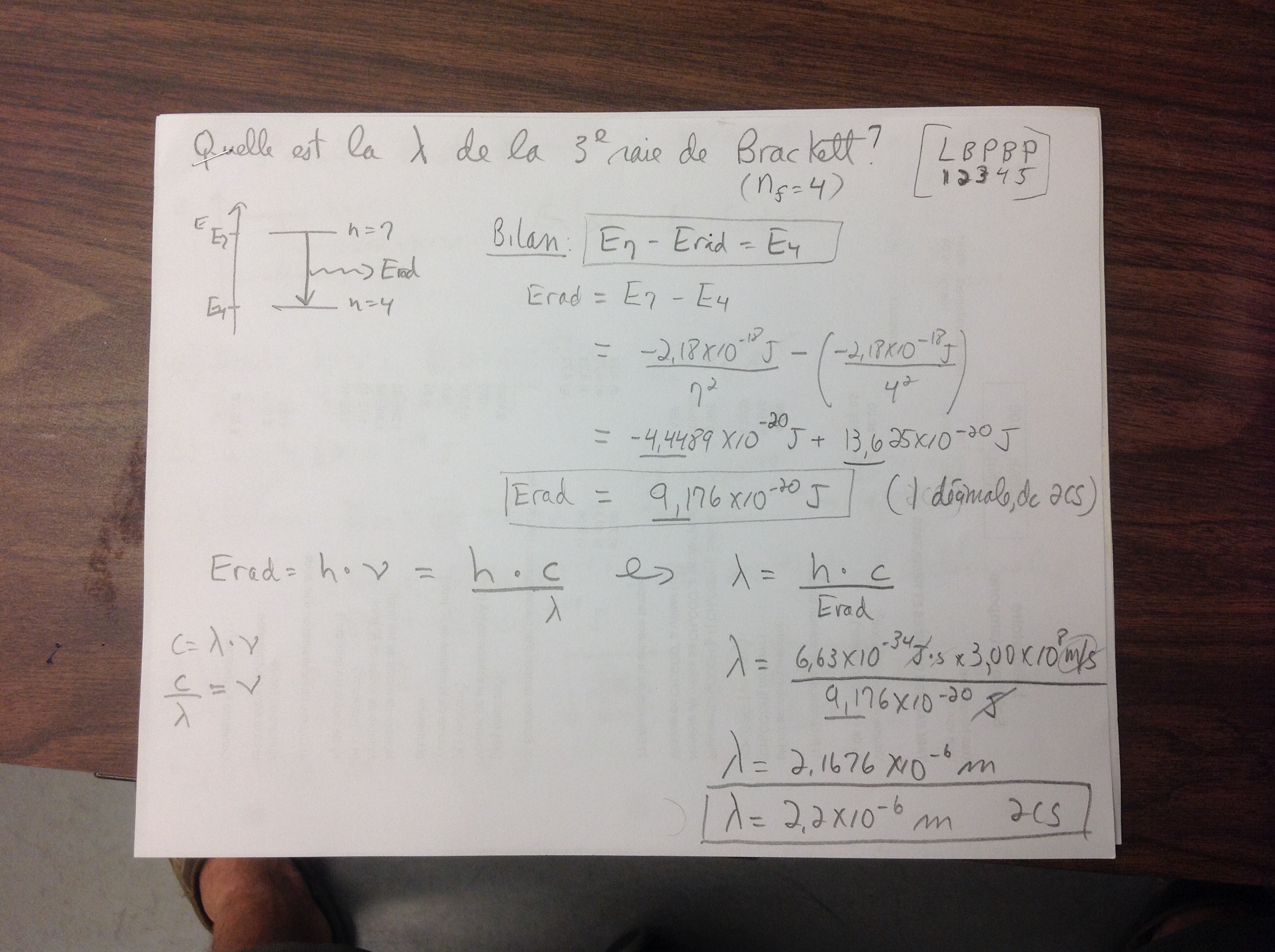 Page 15 : Quelle est la longueur d’onde de la 3e raie de Brackett ? Solution